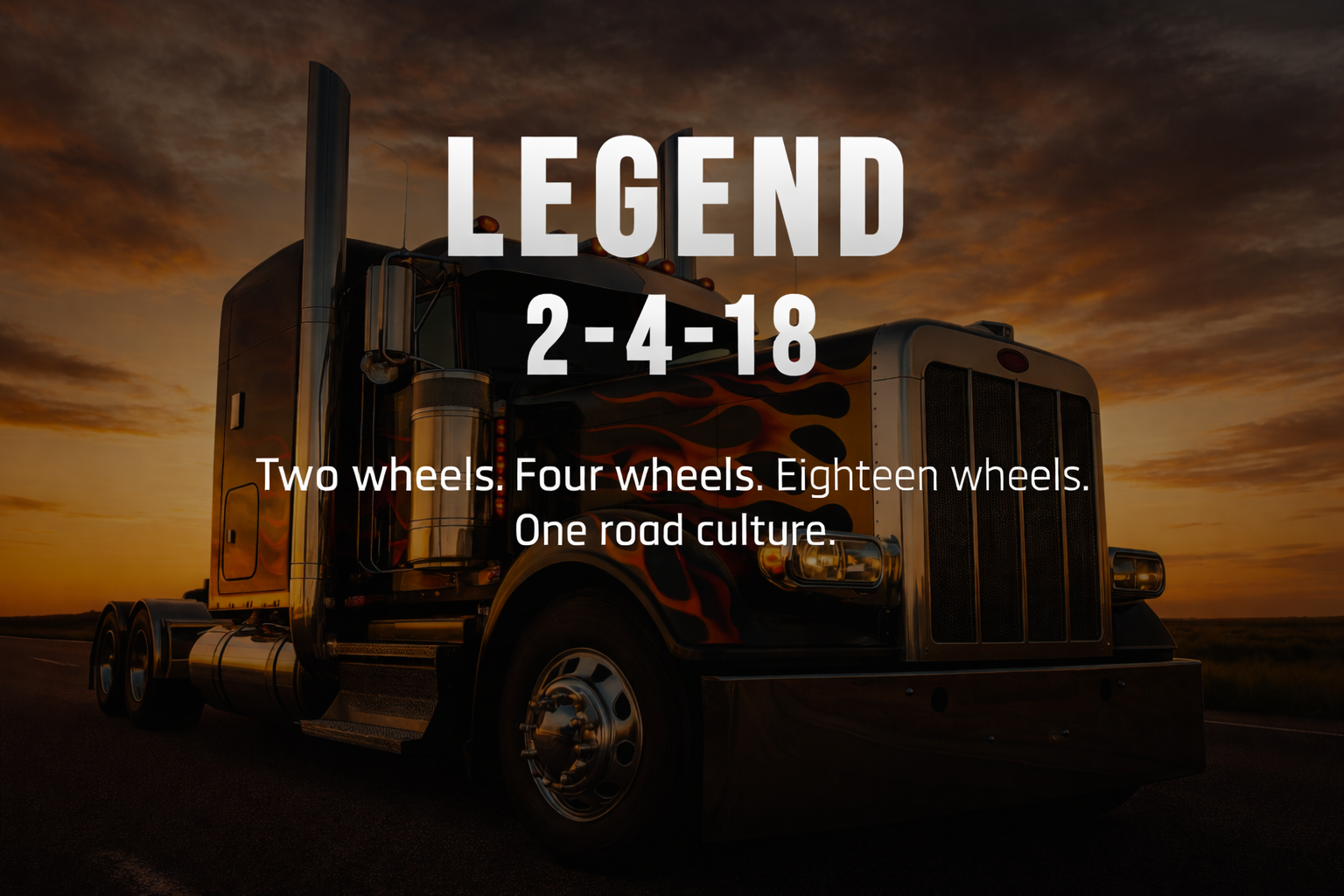 From the open highway to the garage floor, Legend 2•4•18 celebrates the machines and the people who live for the road. Whether you're riding two wheels, driving four, or commanding eighteen, you're part of a culture built on authenticity, passion, and the freedom of the open road. Our apparel honors the riders, drivers, and mechanics who keep the road alive.